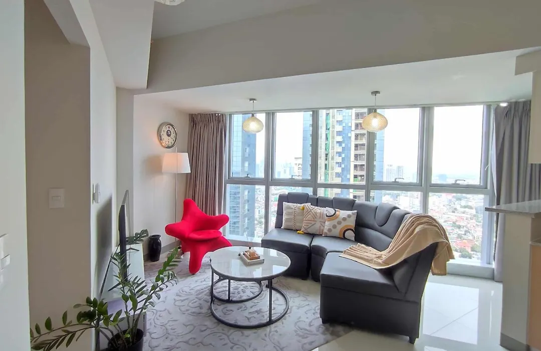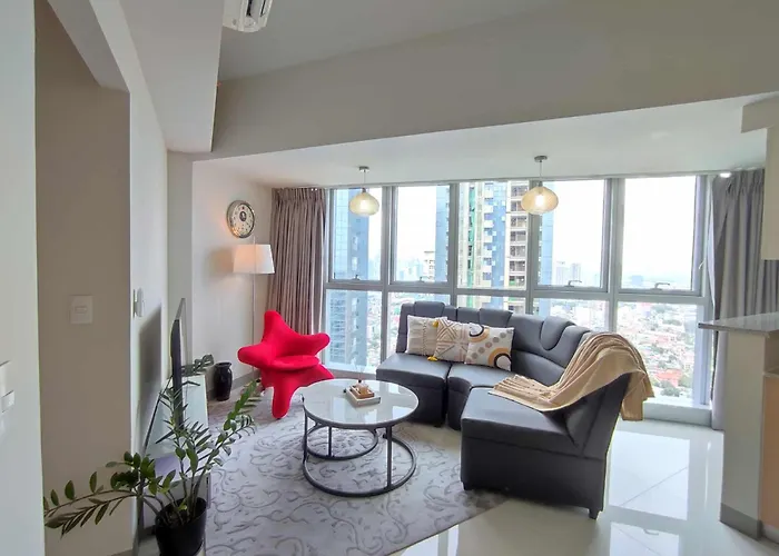 65m²のUptown Parksuites Upscale Spacious Cor Unit Balcony And Views マニラ市アパートはアジア開発銀行から車で10分で、スター・シティなどの家族連れに人気のスポットから7キロメートルの距離の場所にあります。 プールを提供するホテルは、サウス・センボほんの数分です。